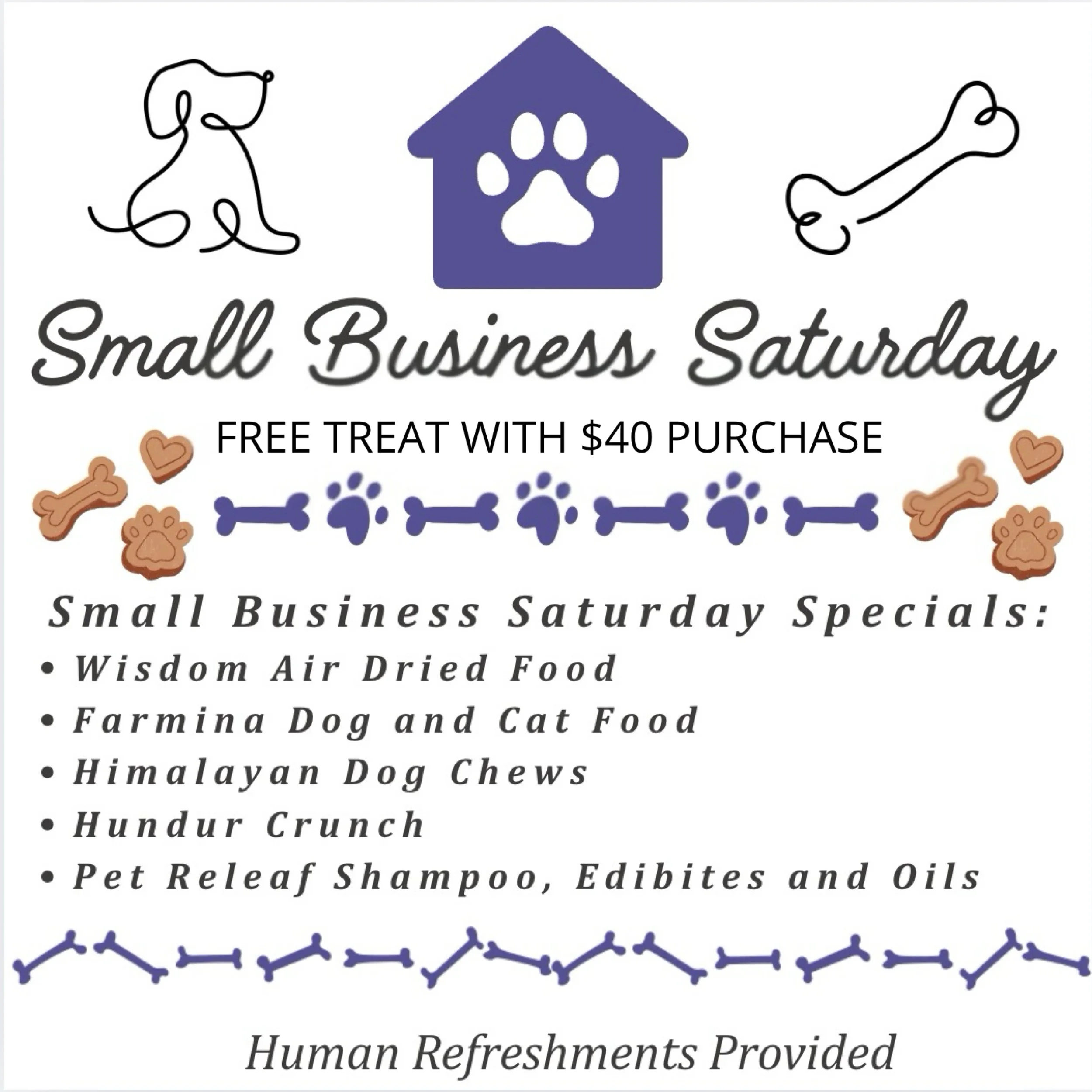Both bakery locations to participate in Small Business Saturday with a free treat with a $40 purchase. Plus human refreshments!