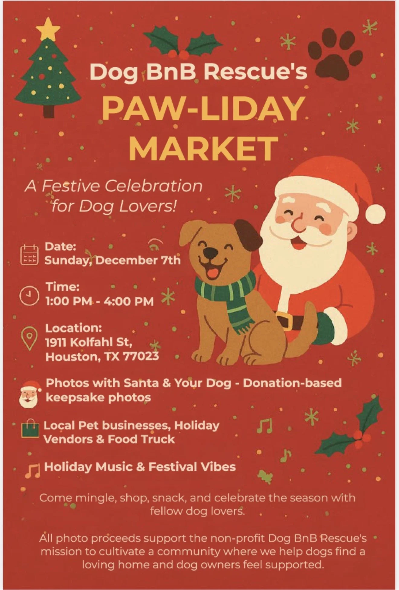 A Festive Celebration for Dog Lovers at Dog BnB Rescue’s Inaugural Event with a Food Truck, Holiday Vendors and Photos with Santa!